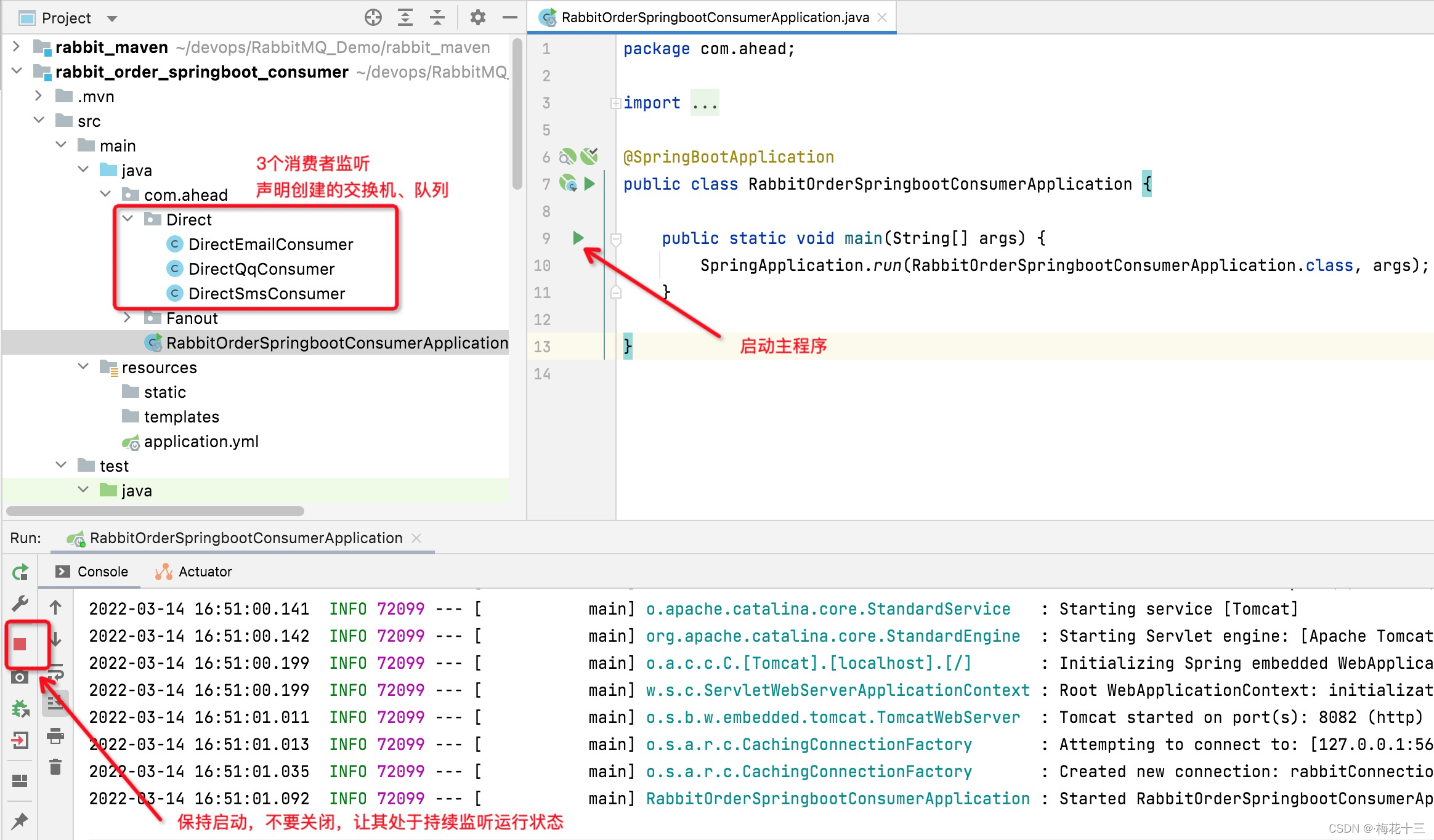 4. 运行主程序,开启消费者监听