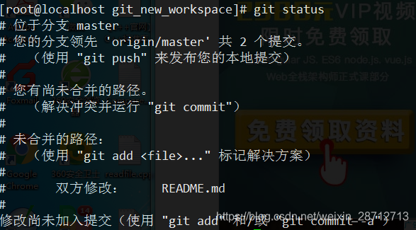 git status也可以告诉我们冲突: