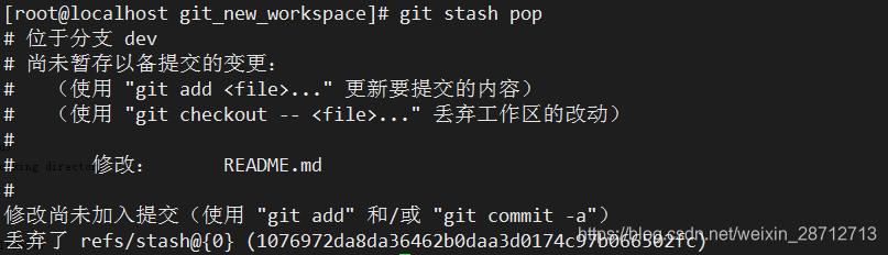 2.使用git stash pop,恢复的同时删除stash: