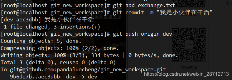 现在他在dev上修改,并时不时的把dev分支push到远程上去: