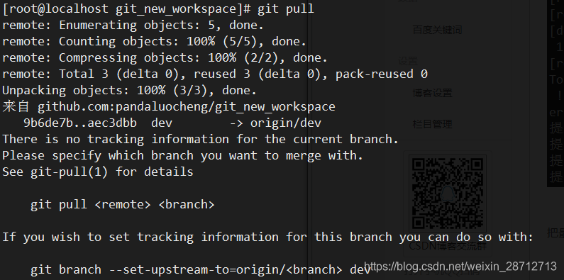 git pull也失败了,原因是没有指定本地