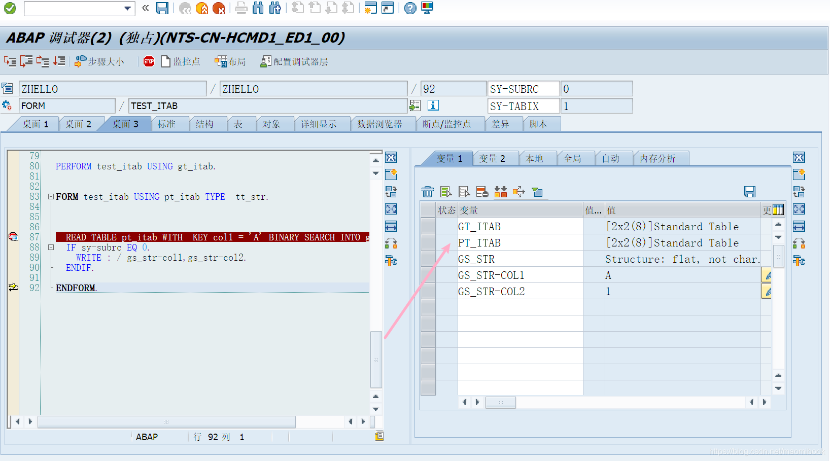 *调用程序要传输的数据gt_itab,把gt_itab的值传递到pt_itab