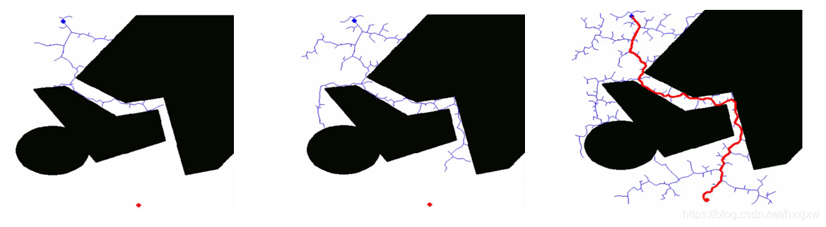 RRT以及其优秀的变种RRT-connect则是在地图上每步随机撒一个点,迭代生长树的方式,连接起止点为目的,最后在连接的图上进行规划