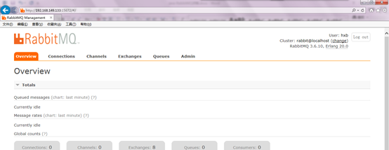 OK!大功告成了,下面你可以在本地访问管理页面了。在浏览器输入地址:http://localhost:15672会出现类似如下页面: