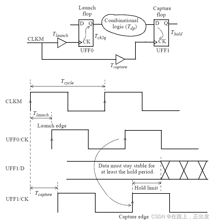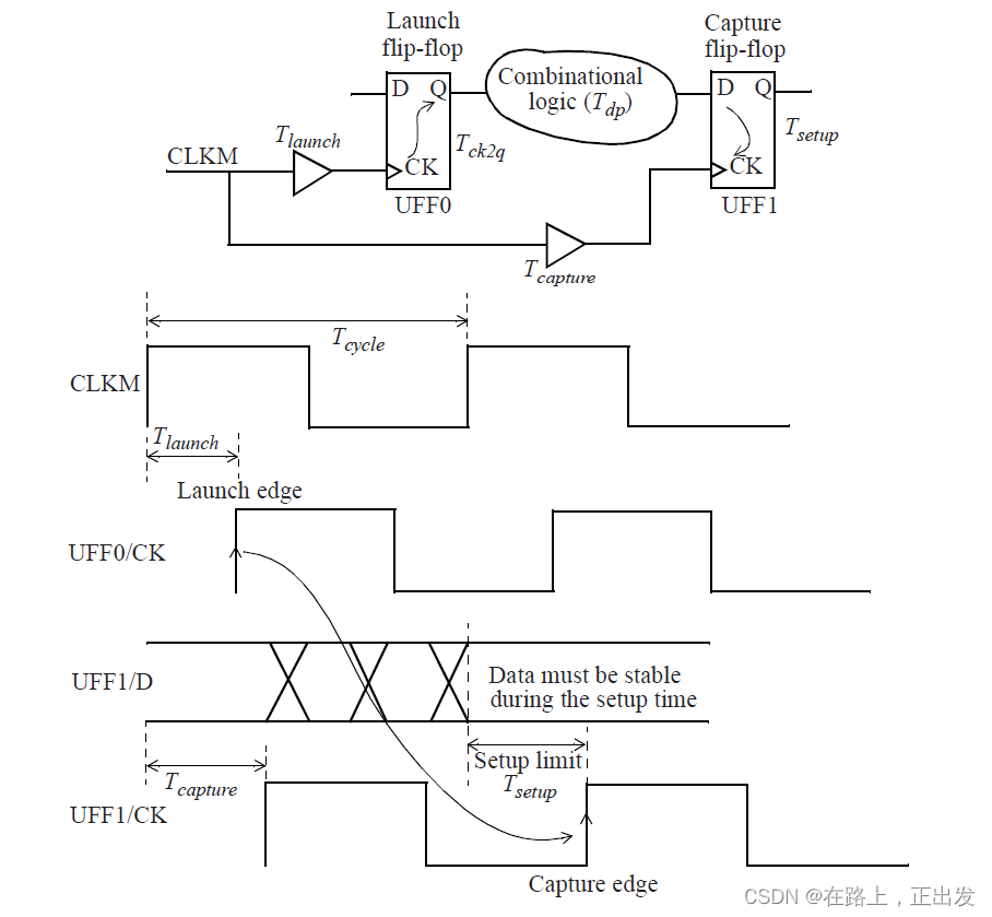 其中,Tlaunch 、Tcapture、Tsetup、Tck2q 是固定的,只有 Tdp 可以通过优化设计进行改动的。