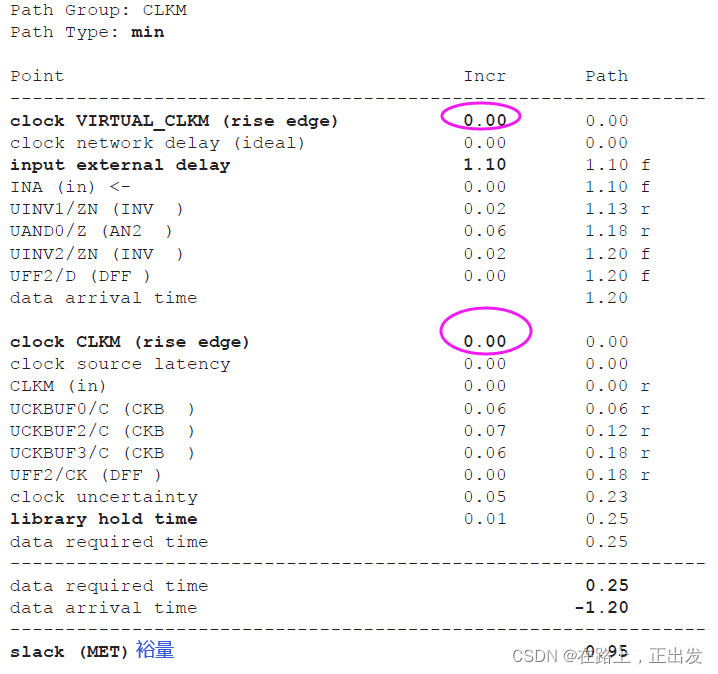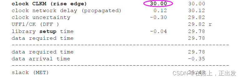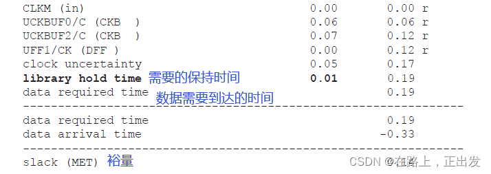 保持时间裕量 = 需要的到达时间 – 实际的到达时间。