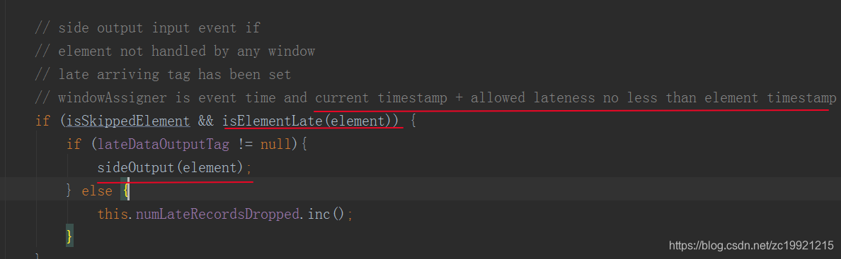 - 默认情况下allowedLateness的值为0,数据会被丢弃
