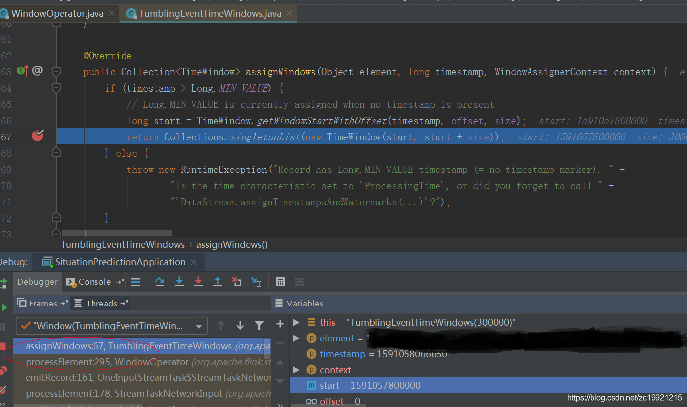 这些内容都在WindowOperator类中的processElement()方法中,下文以TumblingEventTimeWindows为例来详细研究下这个类: