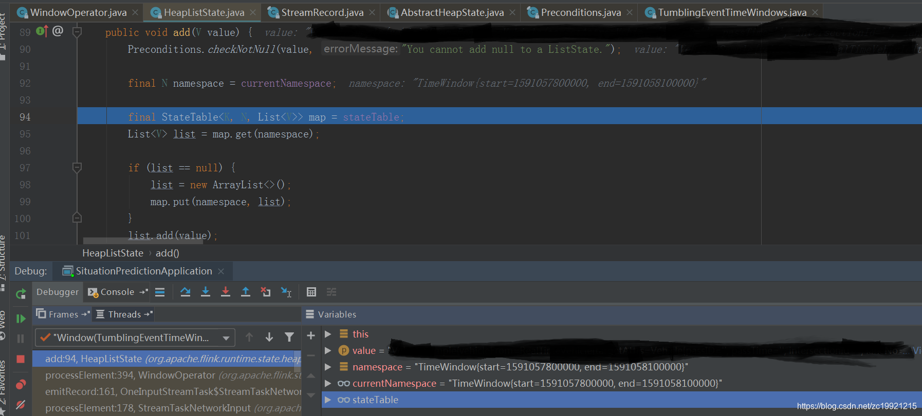 TimeWindow可以理解为是一个标识,WindowState是一个Map对象,Key为TimeWindow,Value为数据集合。也就是说相同时间范围内的数据会追加到Map中的Value中: