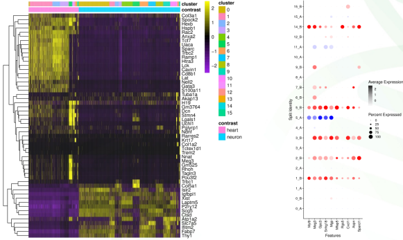 图形展示:tSNE/UMAP图,热图,小提琴图,气泡图