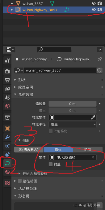 2,在blender软件中,给该道路矢量线设置道路宽度,先将该导入的矢量线转换为曲线。再添加一个路径曲线。
