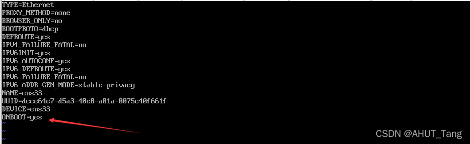 使用vim打开文件ifcfg-ens33,并做更改