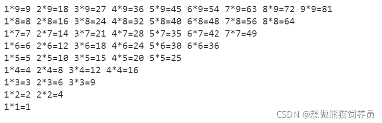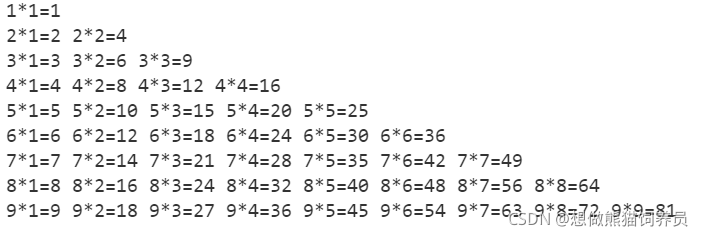 str1 += j + "*" + i + "=" + i*j + "\t";