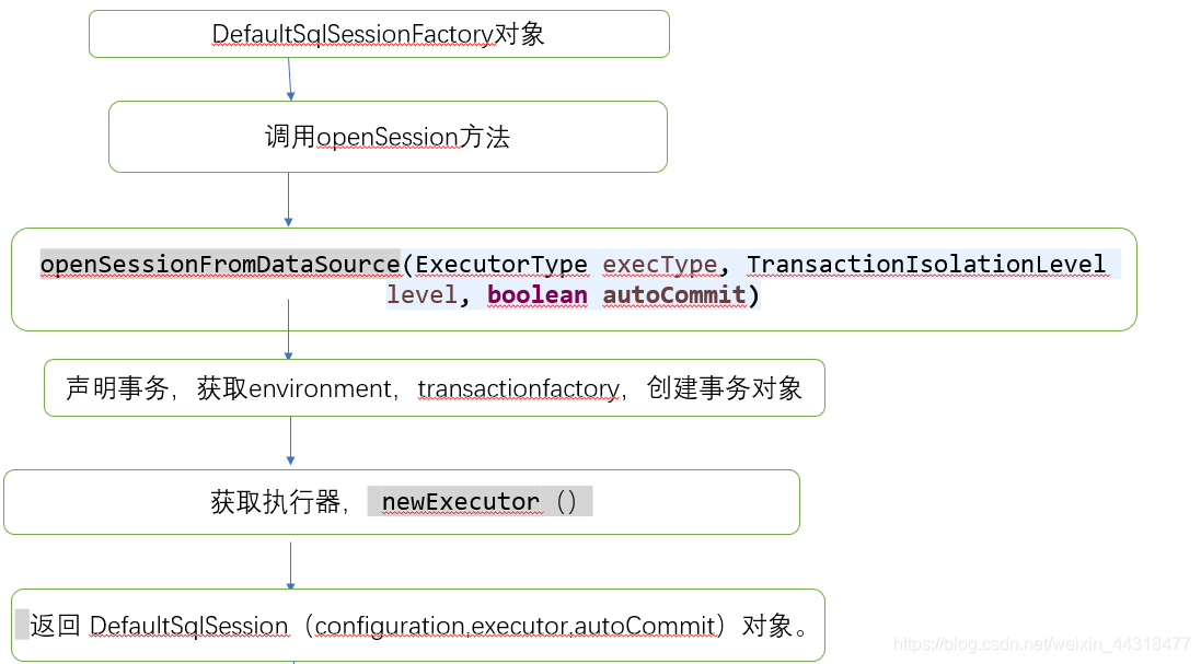 (1) 通过DefaultSqlSessionFactory对象调用它里面opensession方法返回DefaultSQLSession对象