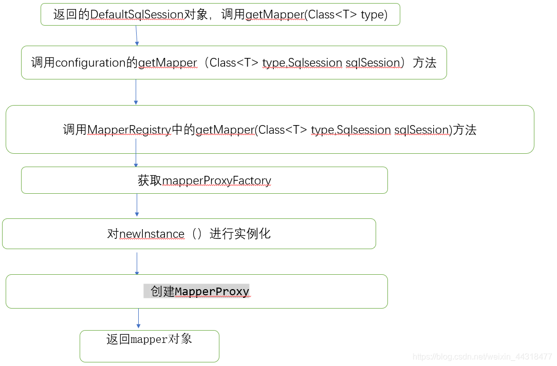 MapperProxyFactory 工厂对象来获取 MapperProxy 在里面使用反射和动态代理的方式来获取最终的mapper对象。