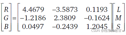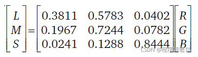 首先从RGB空间变换到LMS空间: