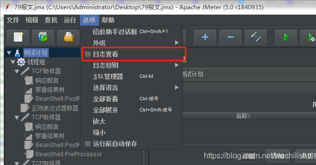 这样设置就可以查看日志文件了,在使用后面的beanshell的时候,如果需要查看beanshell里面的数据,可以使用log.info(“xxx”)来查看数据.