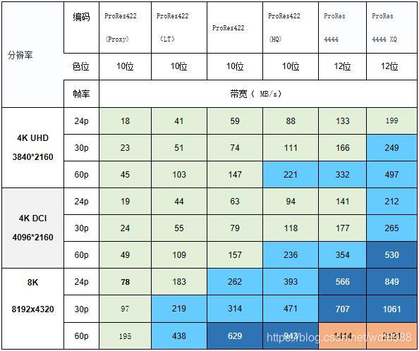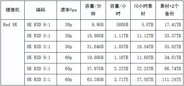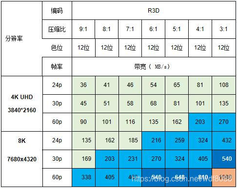 本表是ProRes编码和R3D编码匹配的存储介质选择参考
