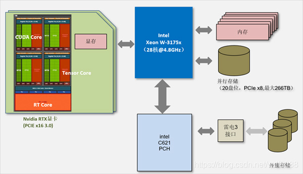 但是进入2019年,随着Intel的最新Xeon W-3175X超频处理器以及Nvidia RTX(图灵架构)显卡、大容量高带宽硬盘上市,8K实时后期编辑工作站成为可能。