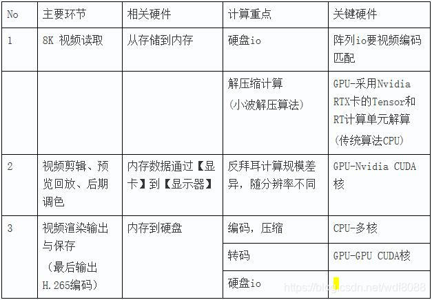 和高清、4K视频相比,由于8K视频后期处理的各个环节(剪辑、特效、调色、渲染)计算量指数级规模提升,计算设备压力体现在: