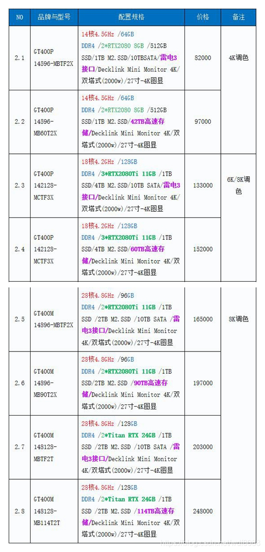 3.2 4K/6K/8K影视调色硬件配置推荐