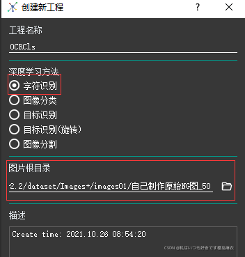 第一步:创建工程 选择字符识别 图片目录为自己原始图片目录