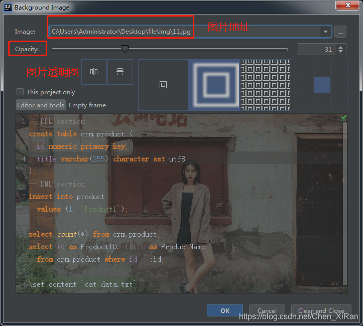 我们就可以选择背景图片的位置在哪里,图片的透明度等等信息