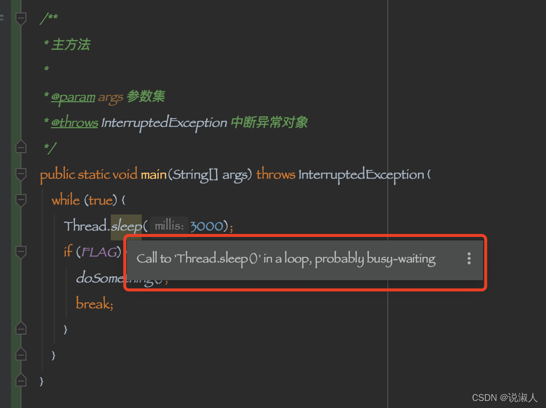 Intelli IDEA会对在循环中使用线程休眠的代码报出警告