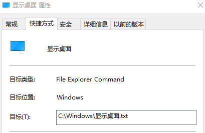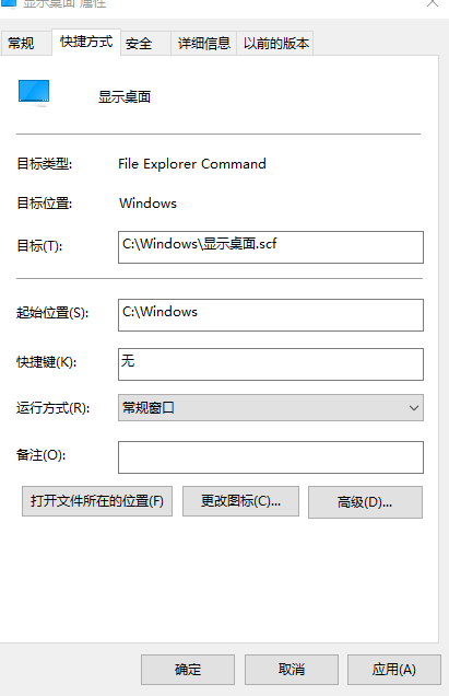 将目标文件名改为为:显示桌面.scf。