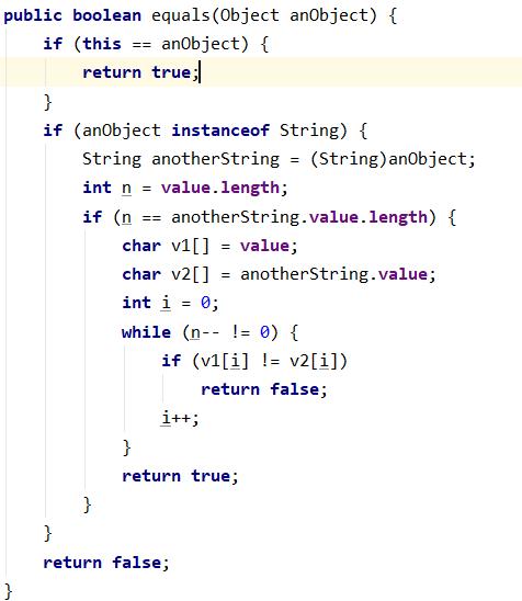 可以看到,equals() 方法体中,返回的是 两个对象的引用的比较结果 。但是,两个 String 类型 == 和 equals() 有时候结果却不一样。那是因为在 String 类中,equals() 被重写了: