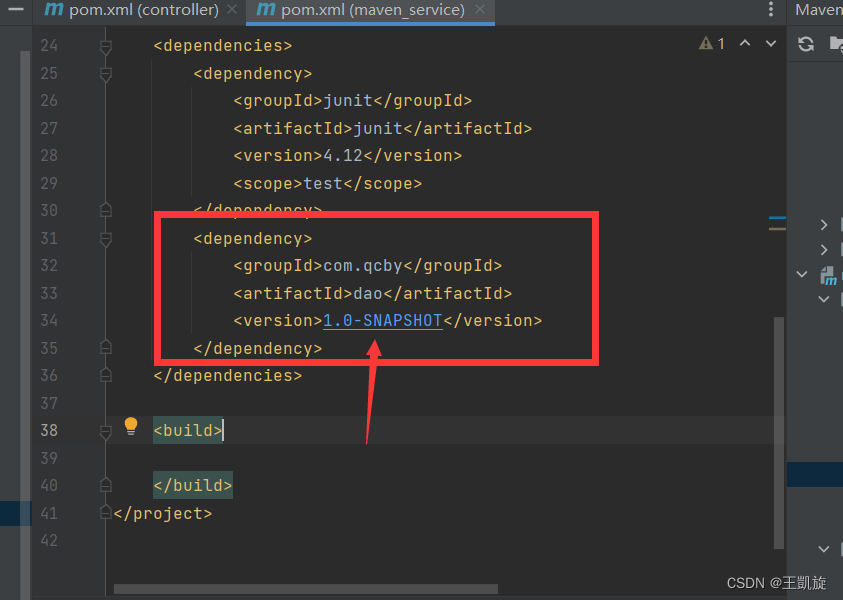 <dependency> <groupId>com.qcby</groupId> <artifactId>maven_service</artifactId> <version>1.0-SNAPSHOT</version> </dependency>