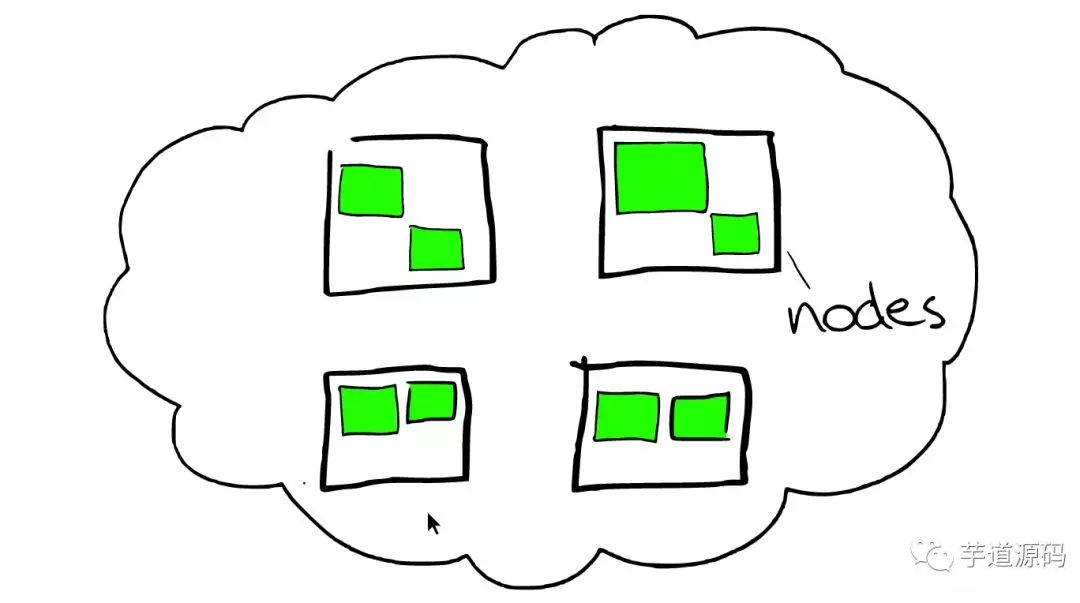 由一个或者多个节点,多个绿色小方块组合在一起形成一个ElasticSearch的索引。