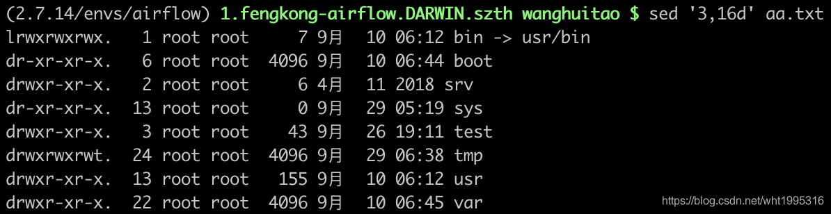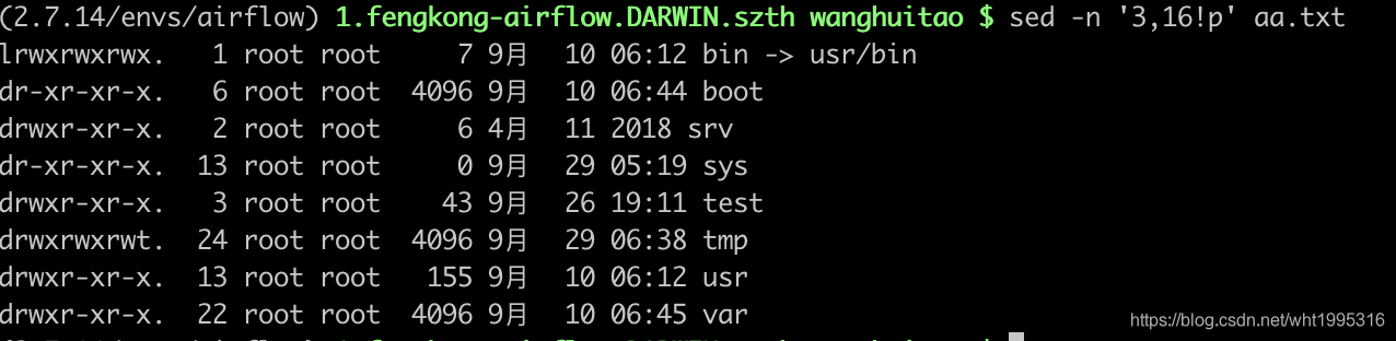 sed -n ‘3,16!p’ aa.txt x,y!查询不包含指定行号x和y的行