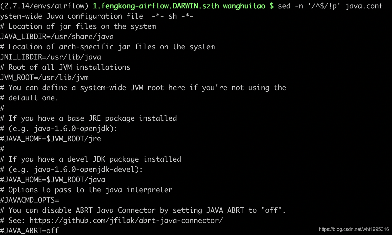 sed -n ‘/^$/!p’ java.conf 先通过^$取空,再取反