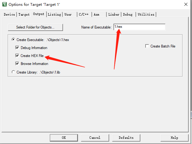 Name of Excutable设置的名称和已有的Hex文件名称相同。