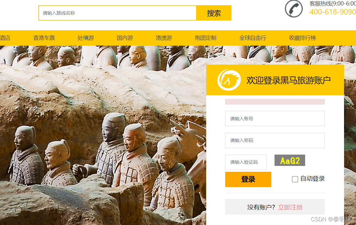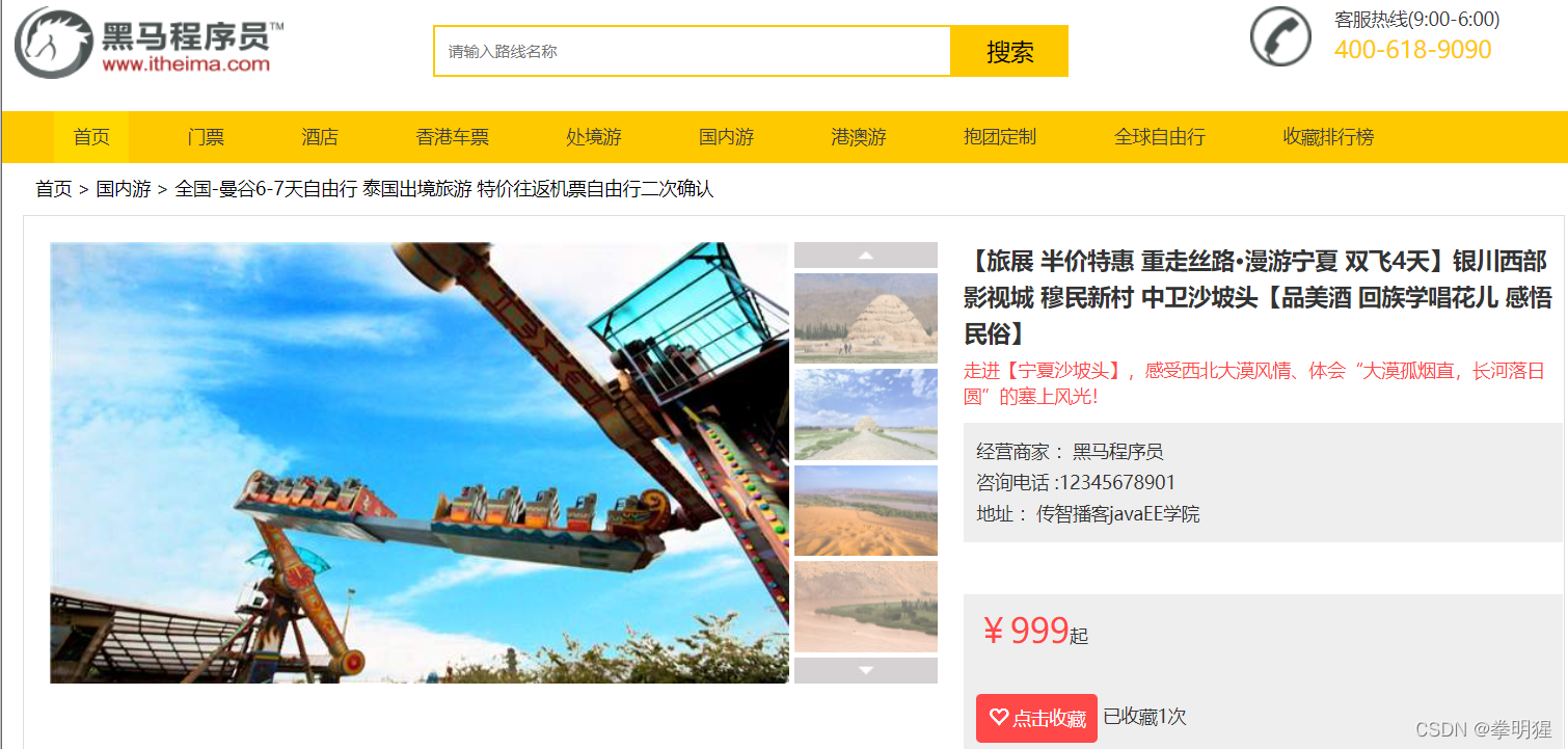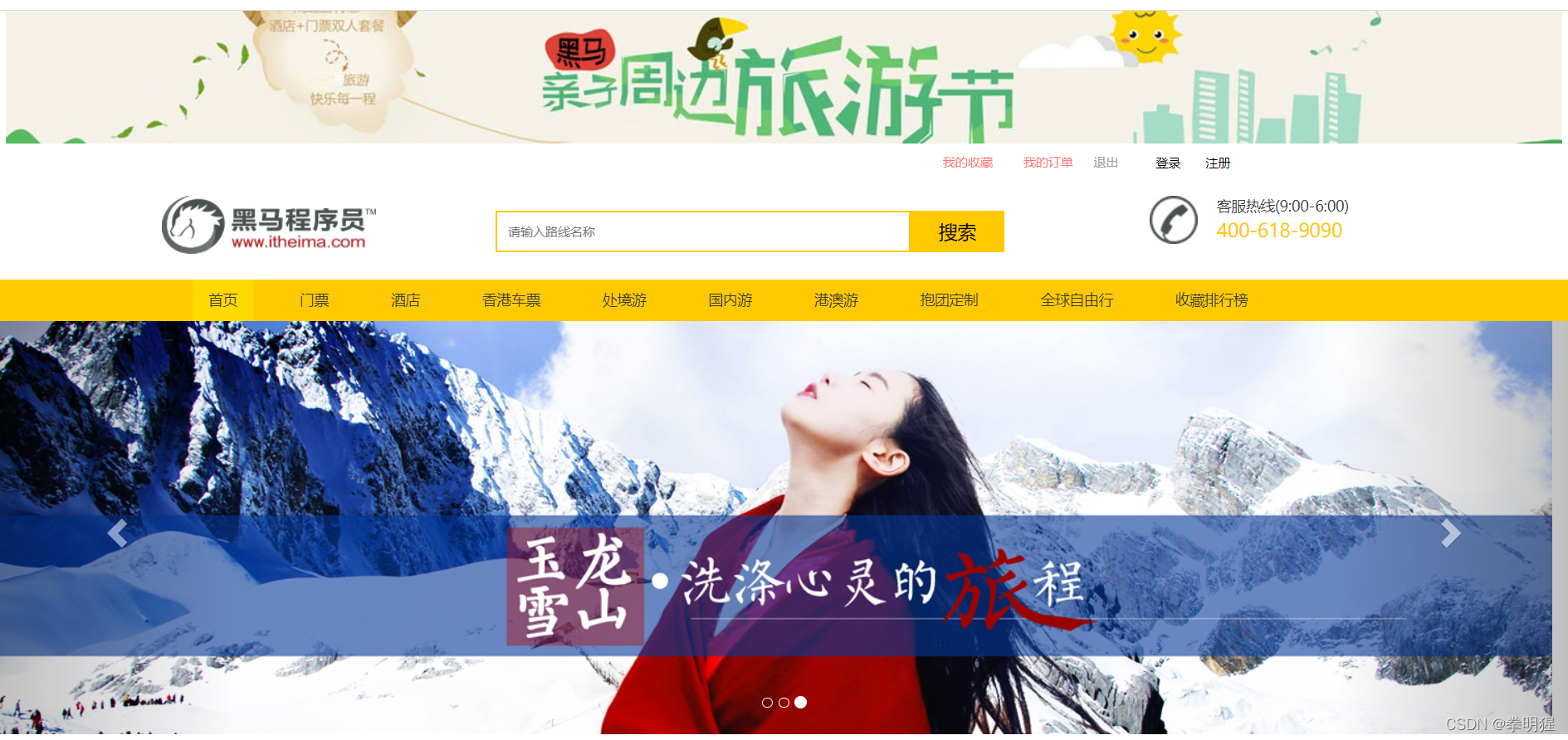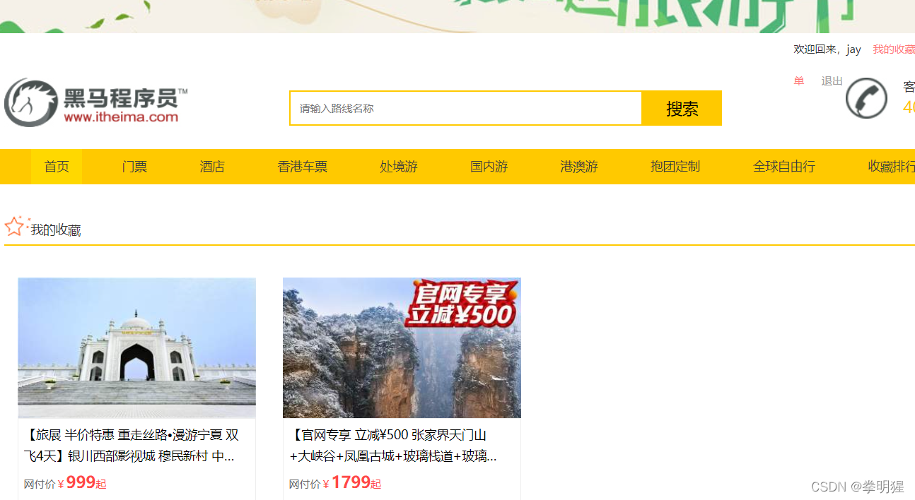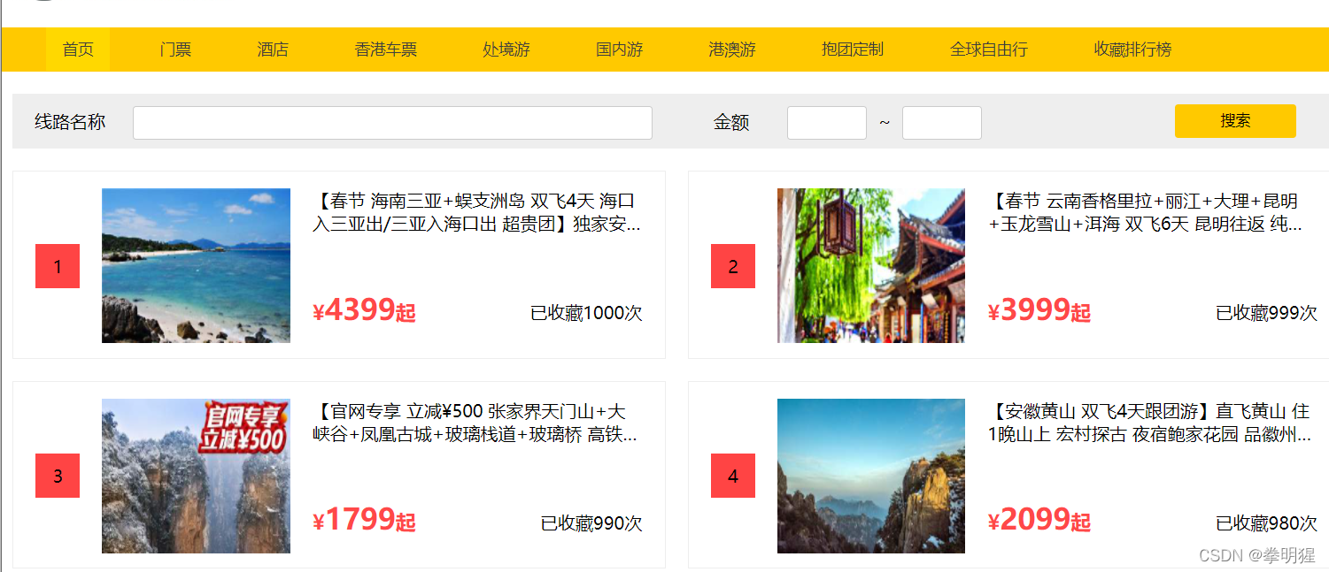 - 首页展示所有旅行路线信息,及旅游分类信息
