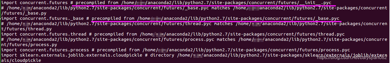来查看,执行上面的命令之后,会进入到python的控制台,然后会看到自动import了很多包,后面带着路径,类似这样:
