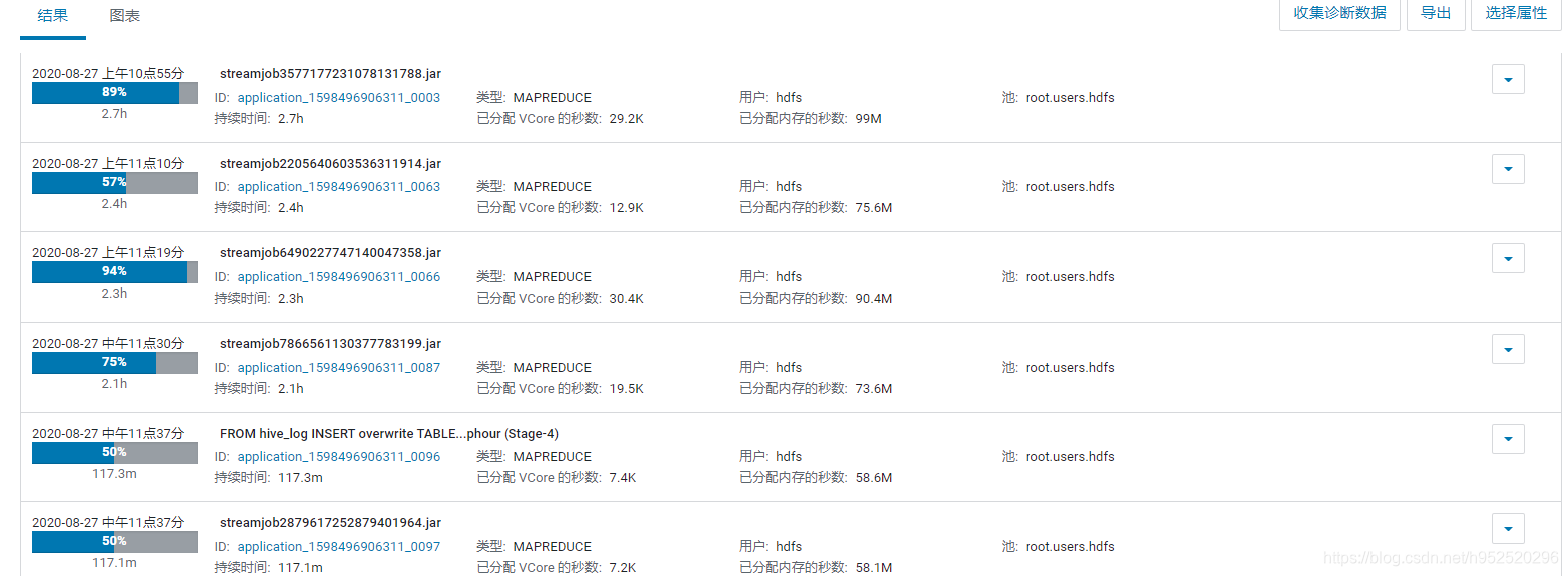 查看详细情形 发现map结束之后 reduce 几乎没有进行 全部卡住 集群里其他的任务没有什么问题 只有stream 任务会出现这种情况