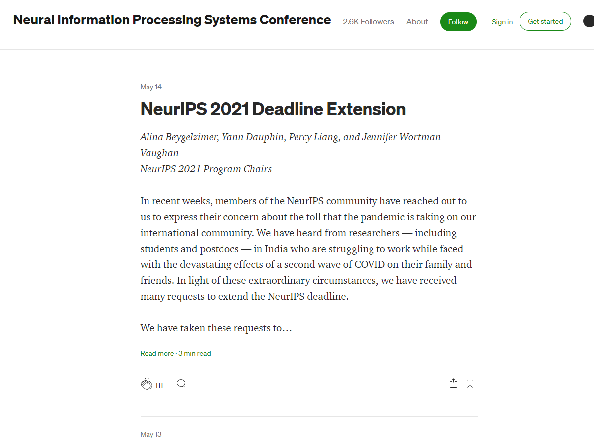 这里就是会发布一些paper call等,还要延时通知等等。就是发布一些通知消息,消息都很重要(这次因为印度疫情就延长了两天···两天···)