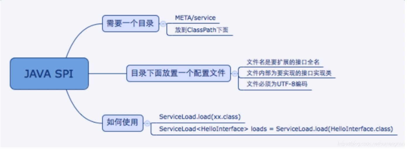 应用或第三方包在jar包的META-INF/services/目录里同时创建一个以服务接口命名的文件。该文件里就是实现该服务接口的具体实现类的完全限定名。而当框架调用ServiceLoader.load(XXX.class),就能通过该jar包META-INF/services/里的配置文件找到具体的实现类名,并装载实例化,完成SPI实现的注入。