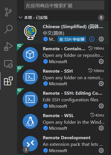 直接在扩展里搜 Remote Developmet 、 Remote SSH (我的Remote SSH是v0.70.0,下载最新即可)