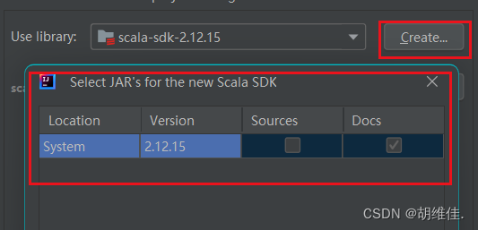 选中Scala,创建Scala使用库,系统会自动寻找电脑中的Scala,选中确定即可