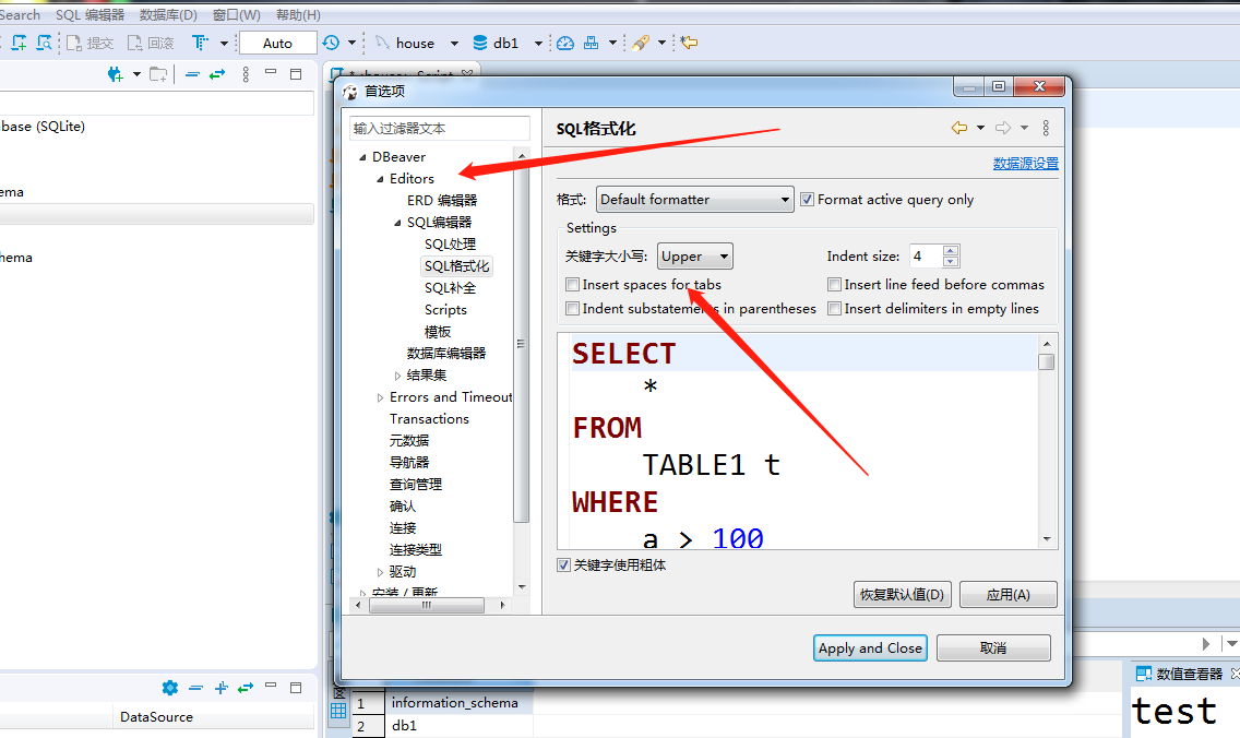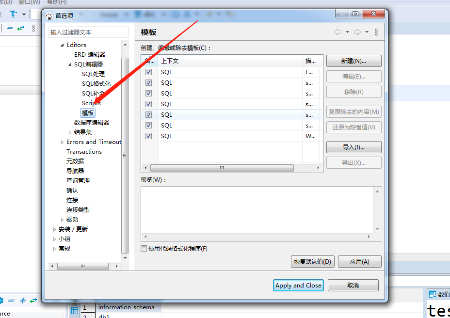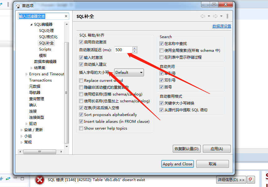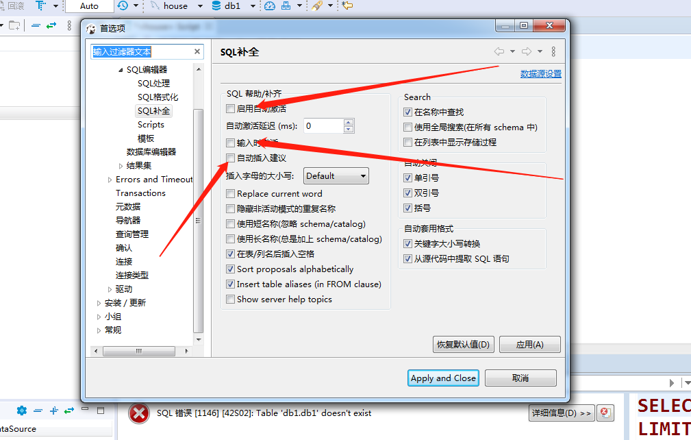 5、DBeaver使用的时候自动补全键是enter,让我很不适应,因为以往我使用自动补全都是用的tab,现在设置好代码块之后,将以下不勾选,就不会出现自动提示,这样就可以使用我们设置的代码块,然后按tab进行自动补全了哈。