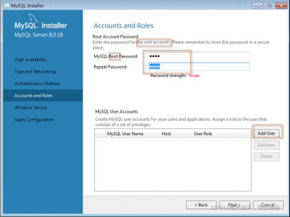 - 可以在此处通过Add User按钮添加其他新账户,此处省略该操作