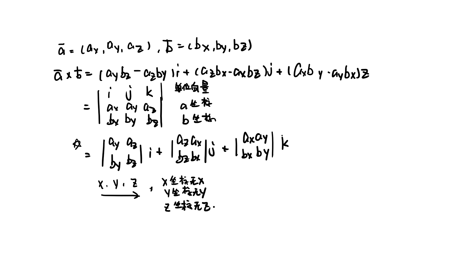 - a//b的充要条件:axb=0