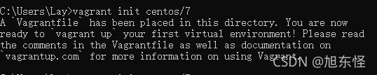 第一步,进入cmd命令窗口,输入vagrant init centos/7,初始化一个CentOS7系统。