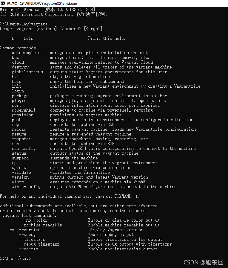 第六步,打开cmd窗口,输入vagrant命令验证vagrant是否安装成功。