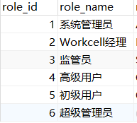 2、role(角色定义表)表,为具体的有多个权限角色,主要字段有: