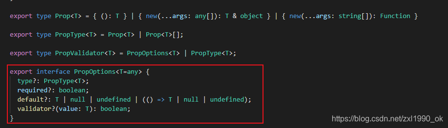 ,包含以下选项:type(类型), required(必填), default(默认值), validator(验证函数)