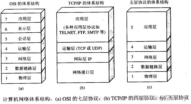 学习计算机网络时我们一般采用折中的办法,也就是中和 OSI 和 TCP/IP 的优点,采用一种只有五层协议的体系结构,这样既简洁又能将概念阐述清楚。